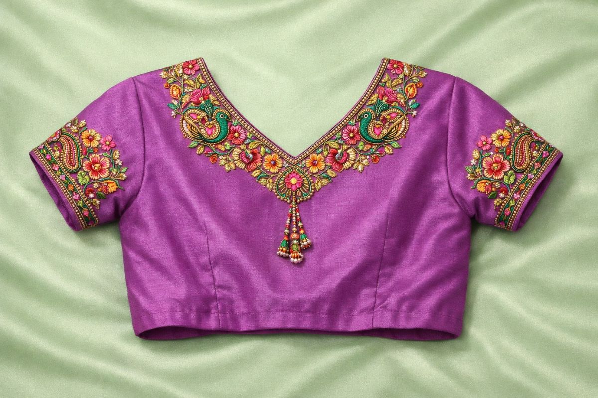 Choose the blouse design based on comfort, fabric, and the saree you want to match. If you want a blouse for regular wear, choose very fine embroidery and easy sleeve styles. For small occasions, you can choose a blouse with a little more detail while still keeping the full look light and simple.